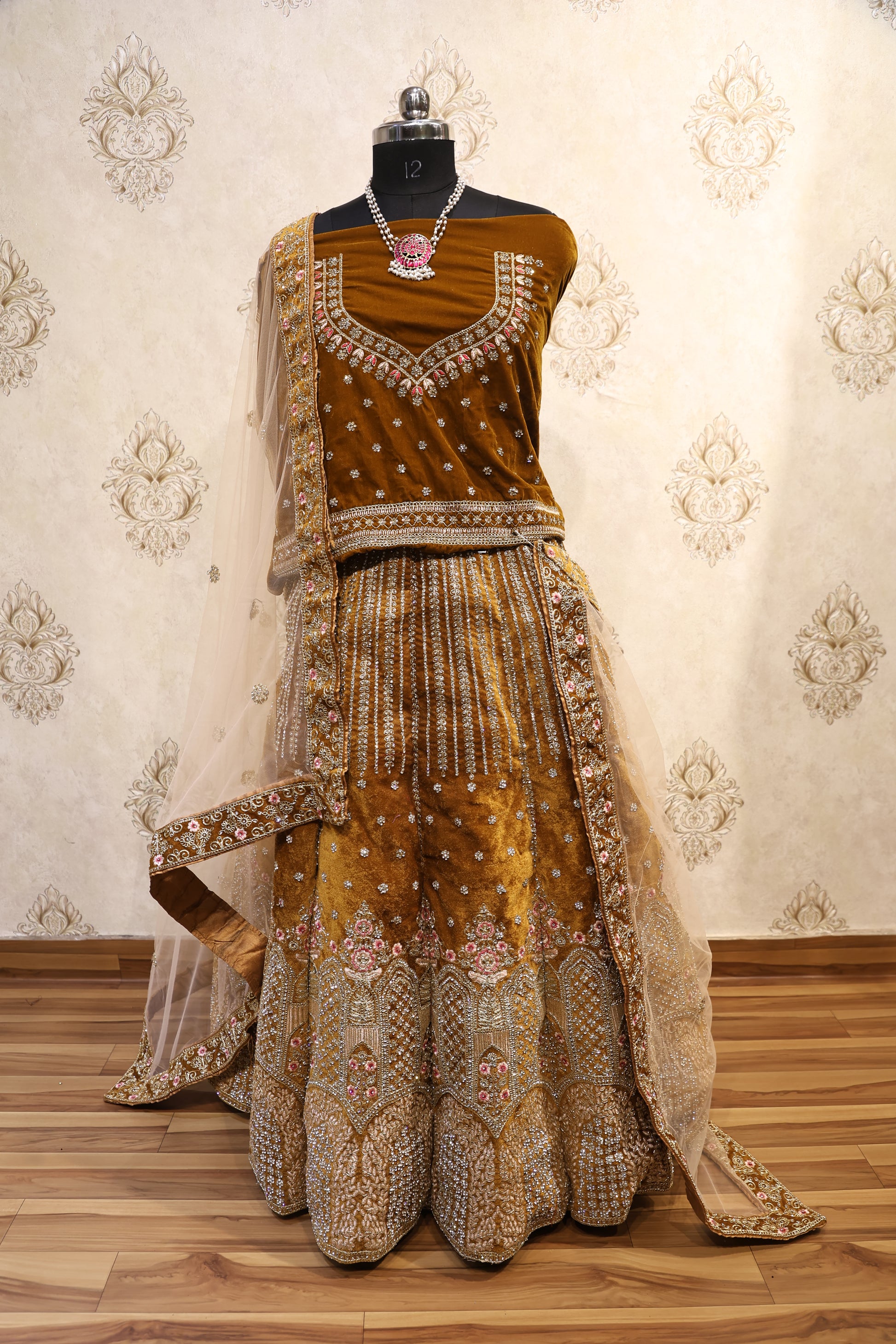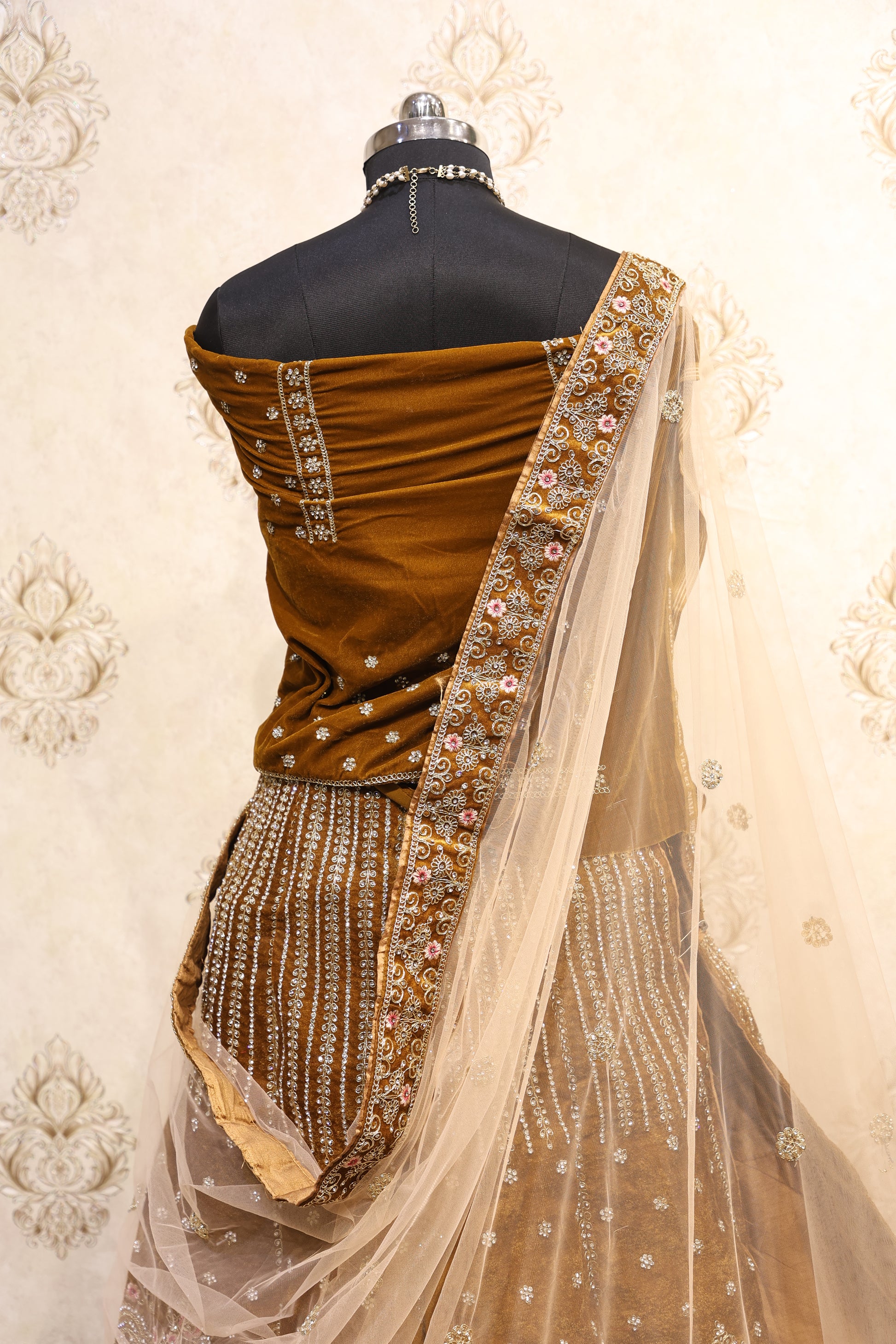 Antique Gold Velvet Bridal Lehenga