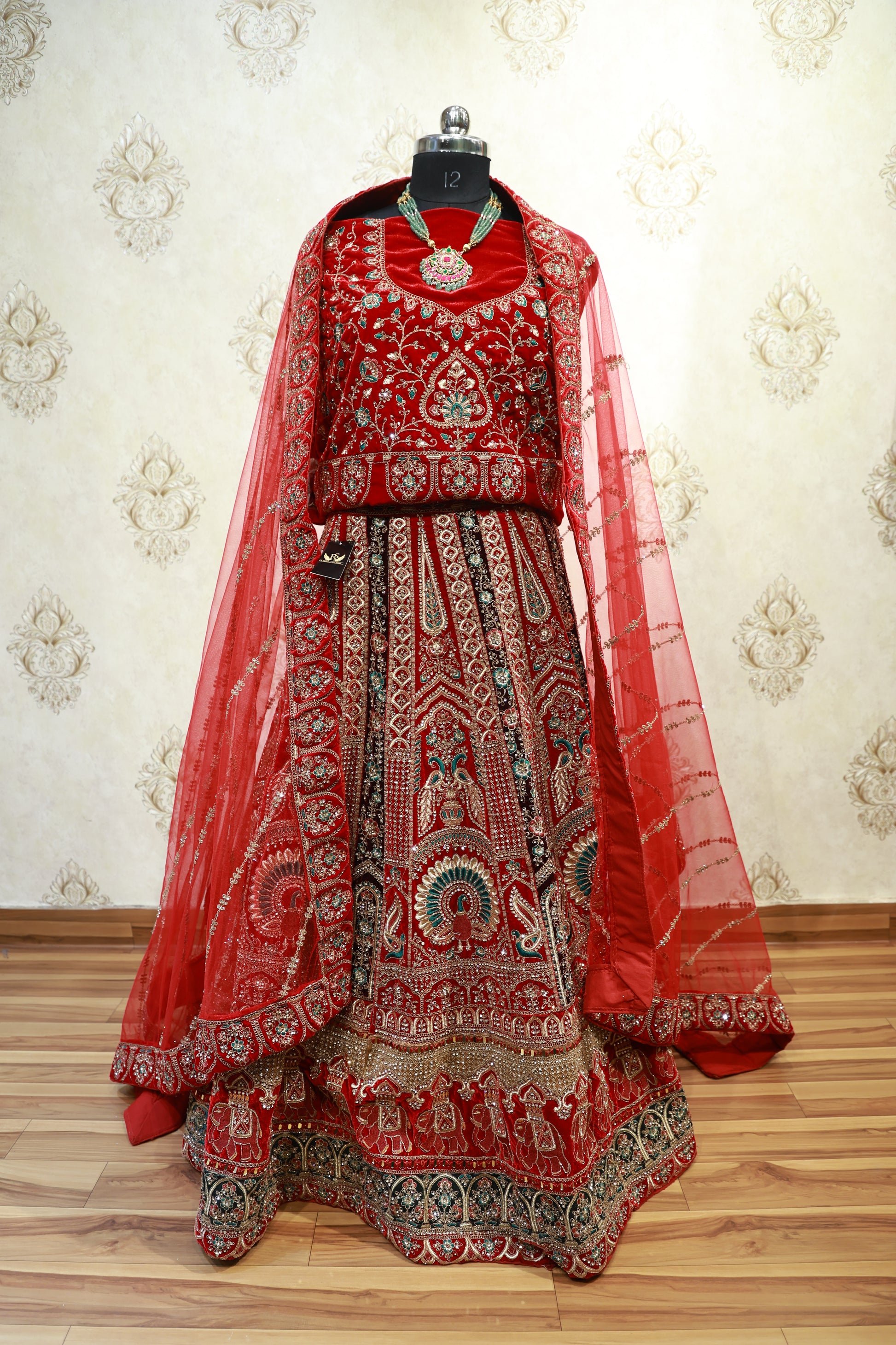 Fabric: Premium Velvet (Lehenga & Blouse), Soft Net (Dupatta)