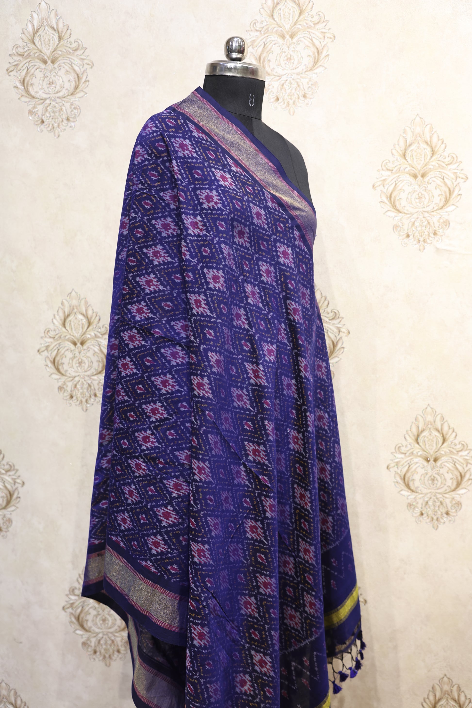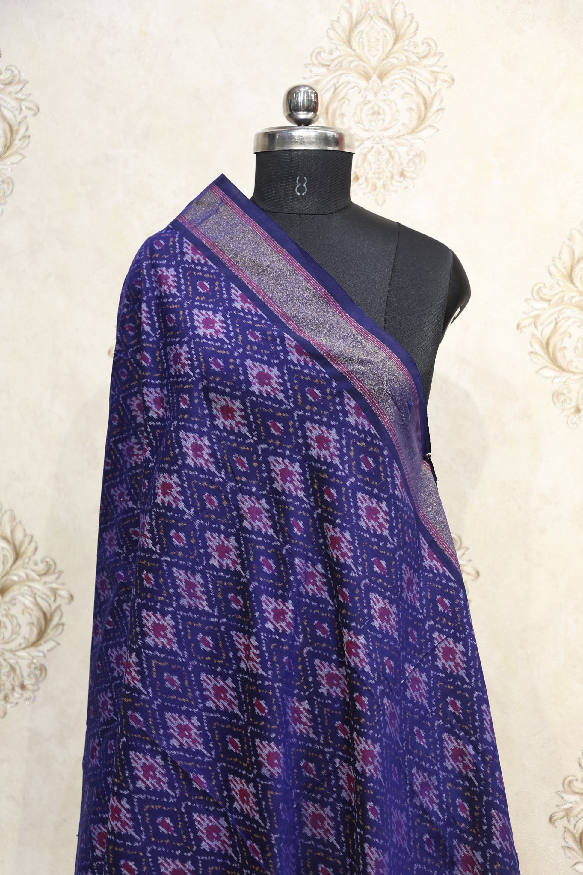 Color: Royal Blue with Multicolor Ikkat Print