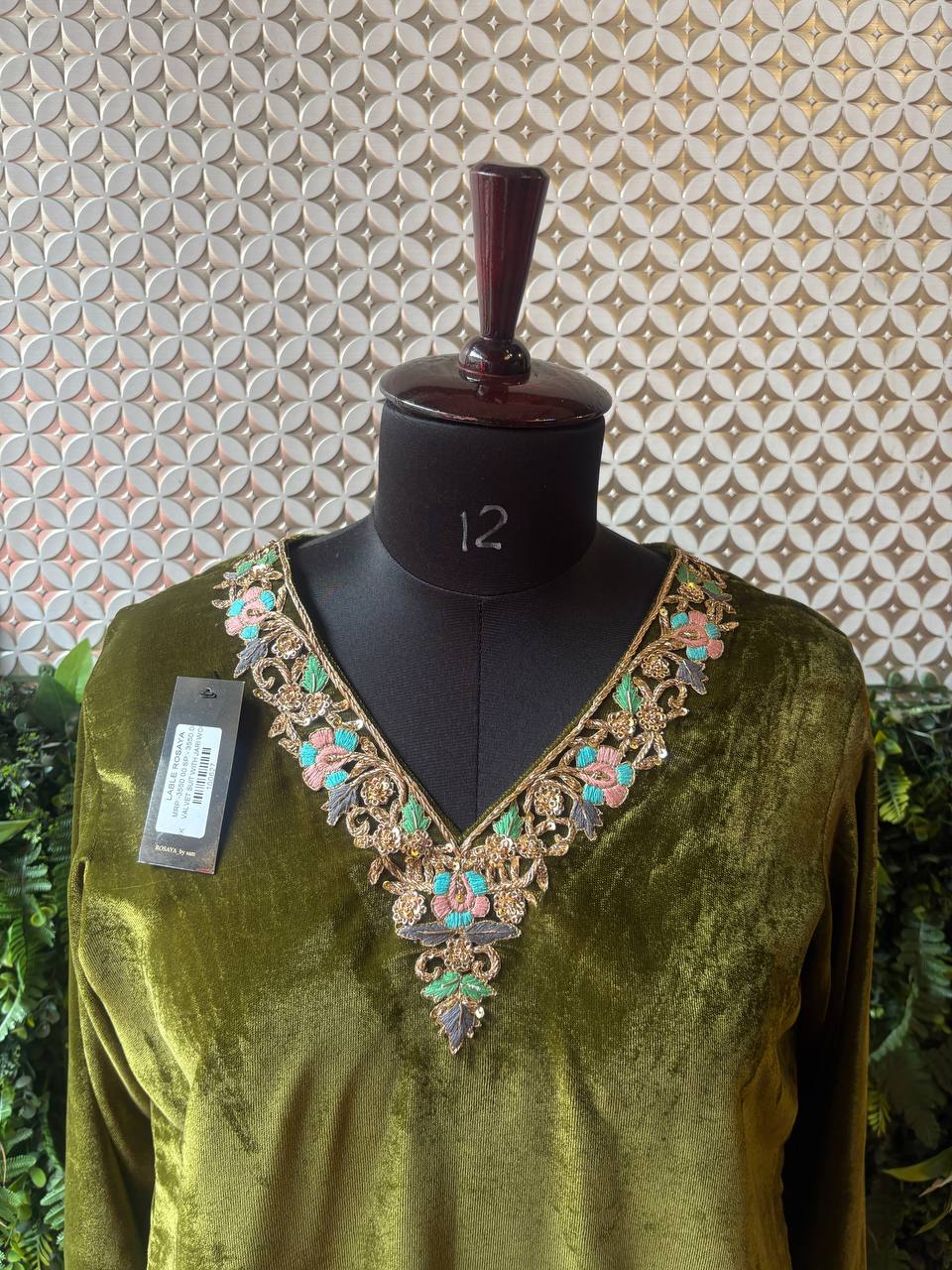 Wrapped in the quiet glow of olive velvet, this Rosaya cord set carries the grace of old-world craft.