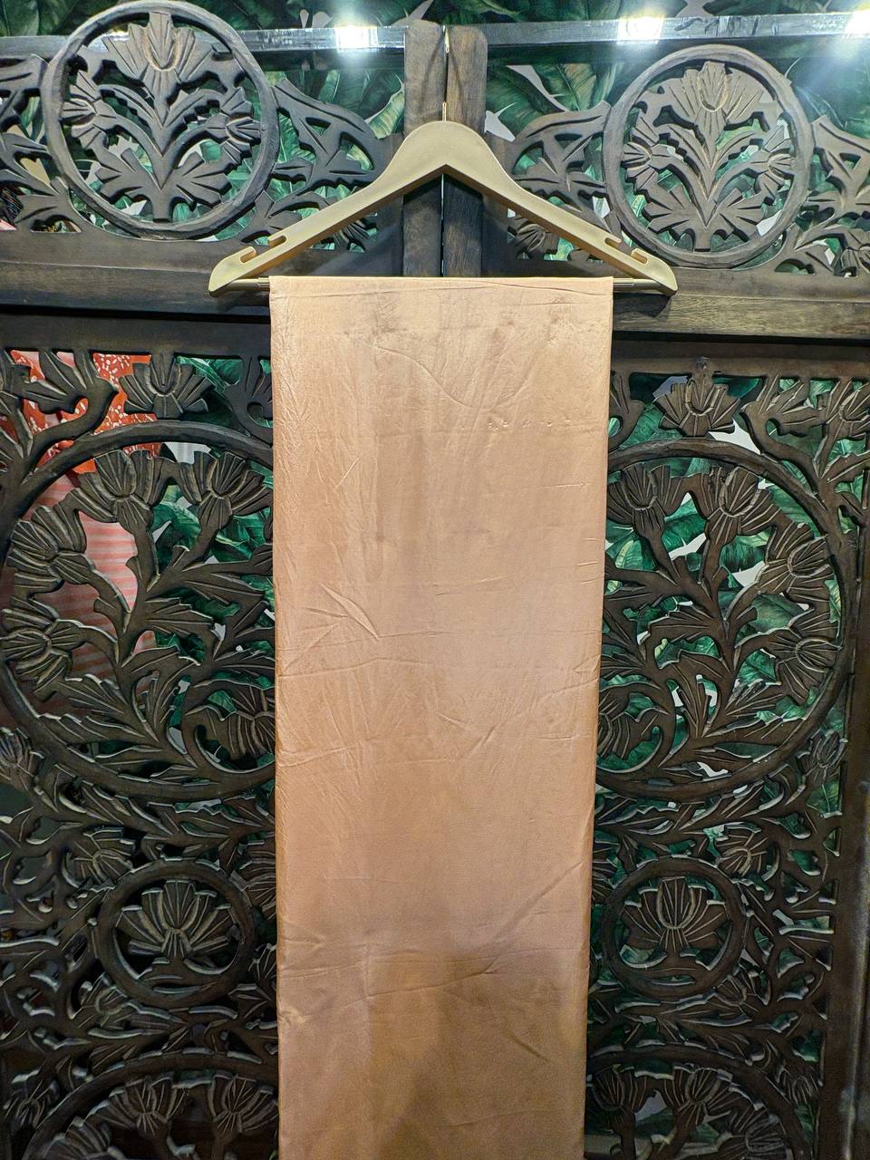 The saree is crafted from a premium crushed satin fabric that drapes like a dream. Its unique crinkled texture adds depth and character, while the lustrous sheen lends an air of quiet luxury. The fabric feels wonderfully soft and fluid, ensuring you stay comfortable while looking effortlessly chic.